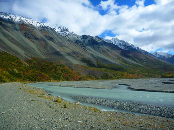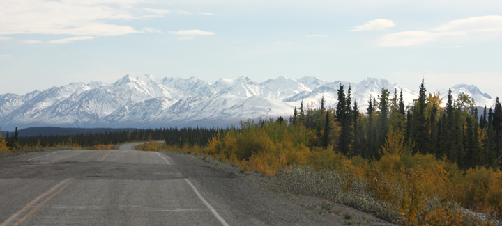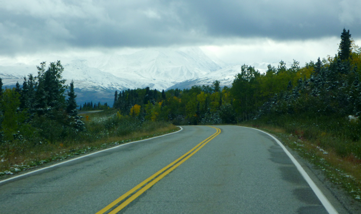 Denali Highway looking east – nice hard pack gravel. We boondocked off the road to the right.
