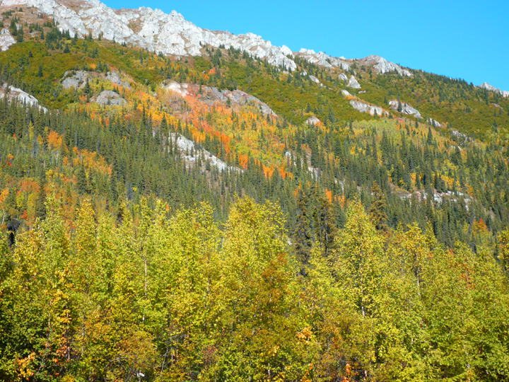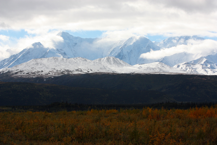 I know this is what you all want to see, so I’ll get it out of the way immediately. Yes, Denali (Mt. McKinley) did make a brief appearance for us. Not entirely clear, but we were very happy to see this much. They say there’s only a 30% chance of seeing the mountain during a typical visit.