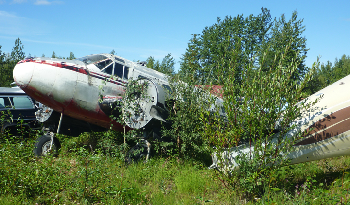 The airstrip in Big Lake has several abandoned aircraft in various states of neglect. We just had to stop and take some photos.