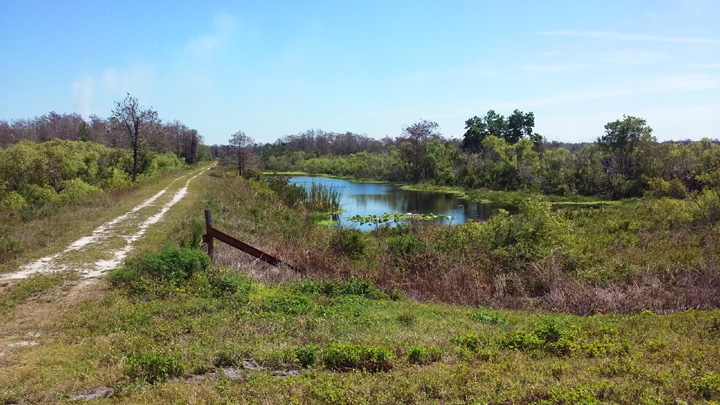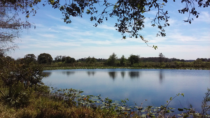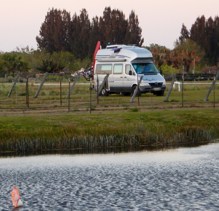 Boondocking next to the pond at RV Golf Club host The Preserves at Turnbull Creek in New Smyrna Beach.