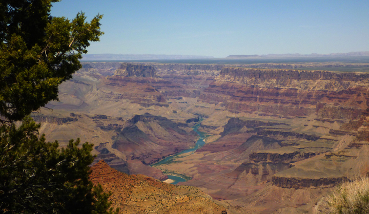 We hiked a bit of the West Rim trail (Can you see it zig zaging across the rock face above?), but we didn’t last long in the heat.