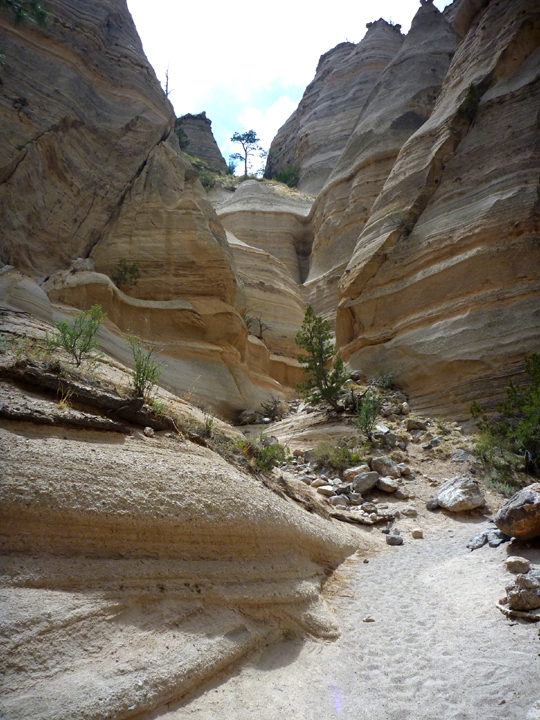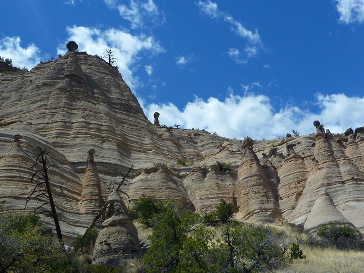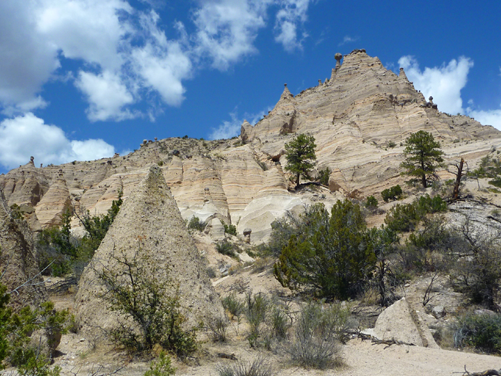 Thanks to a fellow traveler’s recommendation we spent an entire afternoon hiking the trails around the fascinating geological formations at Kasha-Katuwe Tent Rocks National Monument, located approximately half way between Albuquerque and Santa Fe, New Mexico.