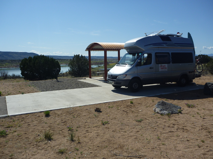 Tucked in for the night at the Army Corps of Engineers Campground at Cochiti Lake, a reservoir on the Rio Grande River.