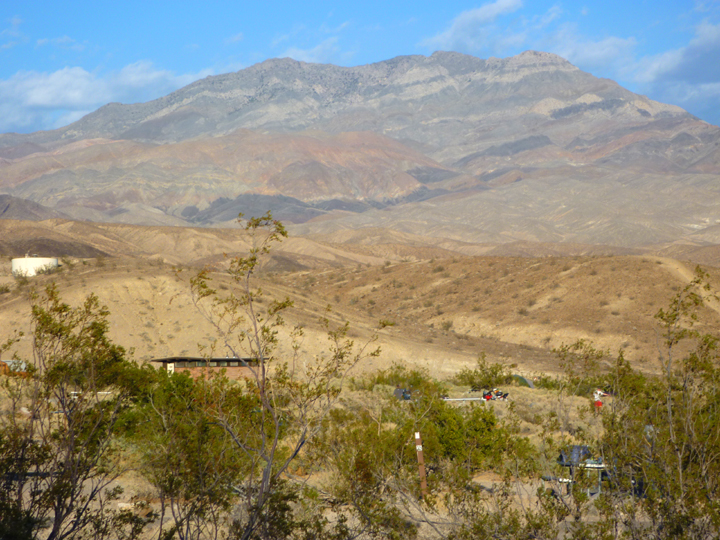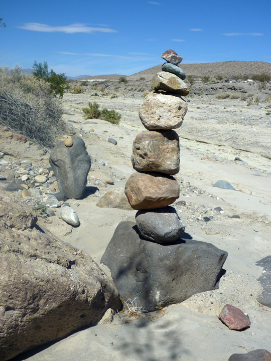 The next day we took an extraordinary hike in an unexpectedly interesting canyon area adjacent to the date farm. We hiked down a long, wide canyon that contained interesting artifacts, up and over a mesa, across the Amaragosa River, over an historic railroad bed, and into a really cool (literally, as it provided much needed shade) slot canyon.