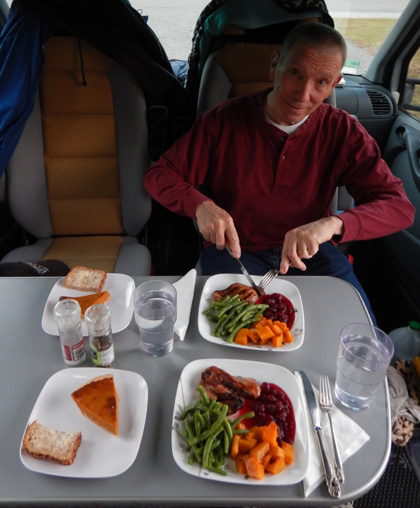 Kim, who is a great cook (she had been in Rhode Island to attend Johnson & Wales Culinary School), prepared many delicious meals for us. Here Al enjoys shrimp grits and collard greens. Can’t get much more southern than that!