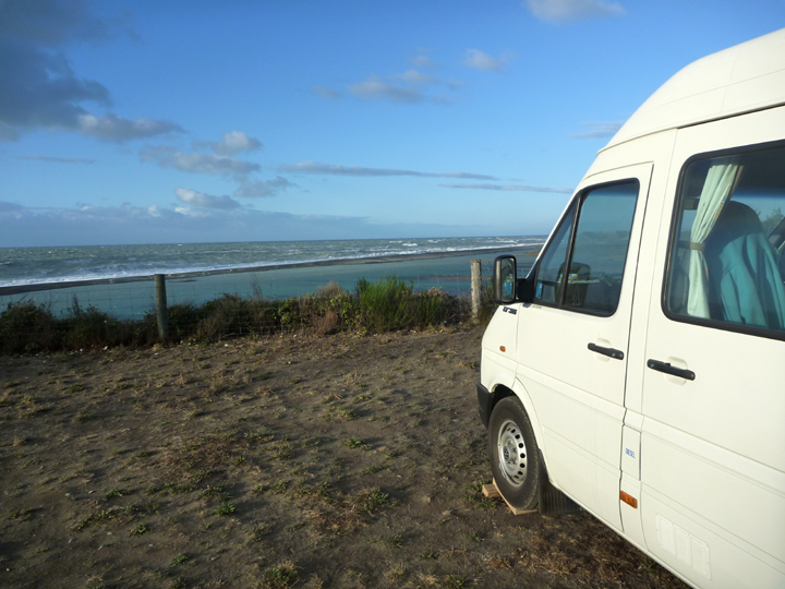 “Freedom Camping” spot at Carey’s Bay, a small fishing town.
